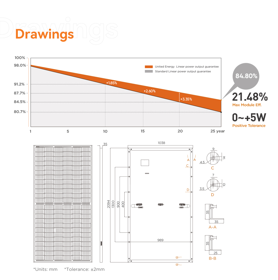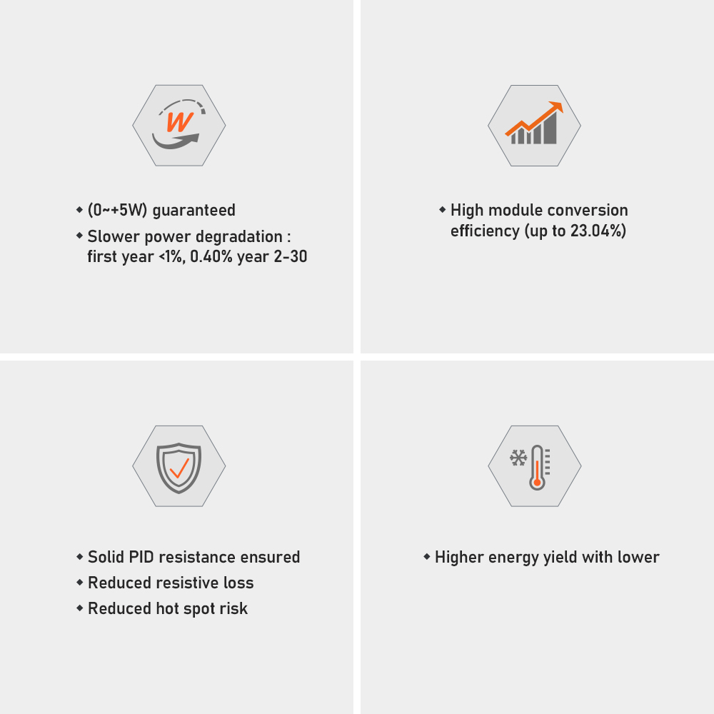 *STC (Standard Testing Conditions): rradiance 1000W/㎡, Cell Temperature 25°C, Spectra at AM1.5