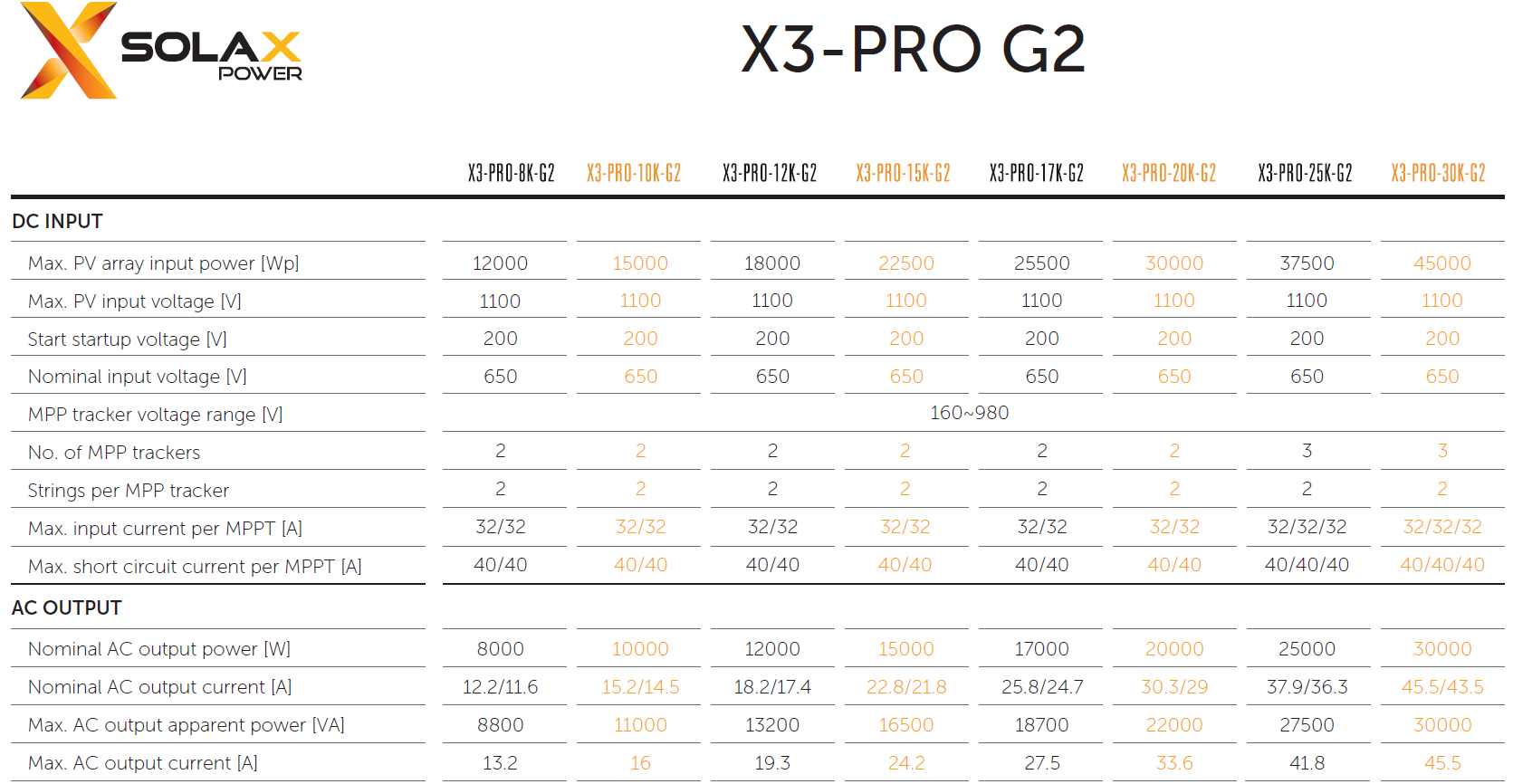 X3-PRO G2 : 8.0KW | 10.0KW | 12.0KW | 15.0KW | 17.0KW | 20.0KW | 25.0KW | 30.0KW
